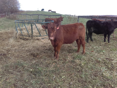 Daisy is home! WOO-HOO! Two months ago, I sent 1 cow(Daisy, Black Angus) and 2 heifers to get bred to a Pharo bull in Ashland,Ohio (roughly and hour away). Just a couple days ago, they returned and I am so, so happy to have Daisy back. Sure, I am glad to see the others as well but Daisy is special. She leads the herd and will follow me like a lost pup and that is a huge help to me. Another exciting apart of Daisy returning was her calf coming back home, boy has she grown! Her little grazing buddy has was glad to see her return. Hopefully in the late summer of 2018 we have 3 healthy calves.